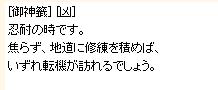 どっちも凶とか。。。忍耐でもなんでもありませんよ・・・リアルでは末吉。どっちも微妙です。